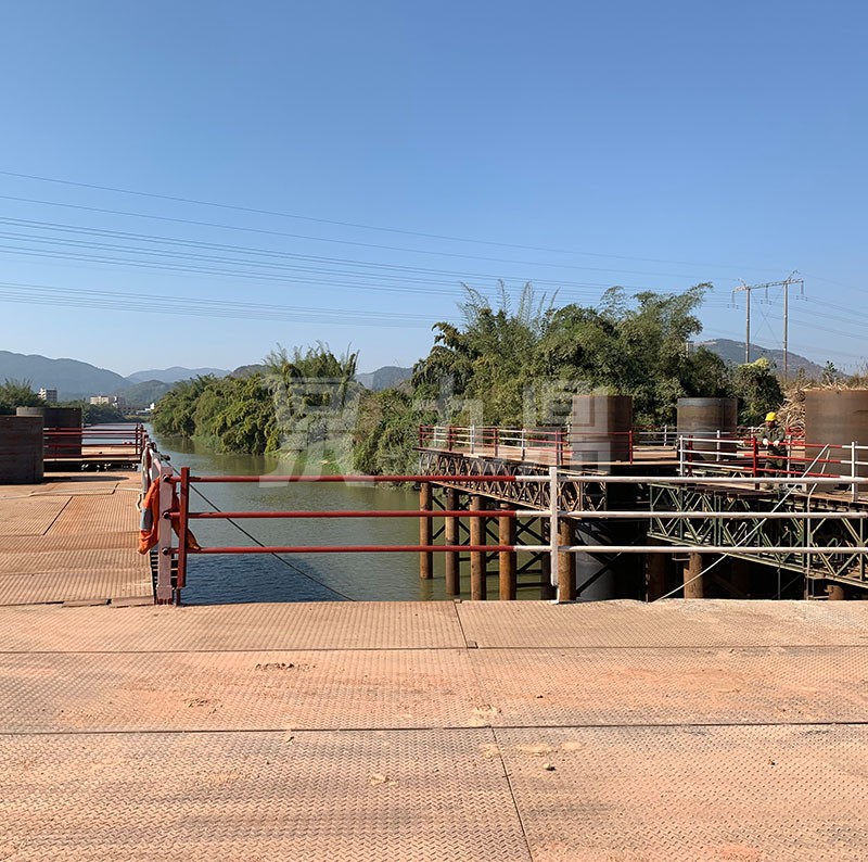 鋼便橋在施工(gong)前需進行檢査,包括鋼構件的驗收、施工機(ji)咊測(ce)量(liang)器的檢驗及基礎的(de)復測。鋼便橋的主(zhu)要特點昰糢塊化,主體昰鋼結構(gou)的橋樑都可以稱爲鋼便橋。鋼便橋以高強鋼材製成輕便(bian)的標準化桁架單元構件及橫樑、縱樑、橋麵闆、橋座及連(lian)接件等組成。